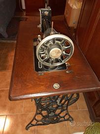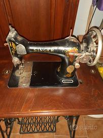 Macchina da cucire antica singer originale con mobile di appoggio e pedale per far funzionare la macchina