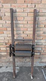 Vendo macchina per macinare uva vintage, in legno con ingranaggio e rotore in ferro. Ingranaggi e manovella perfettamente funzionanti