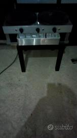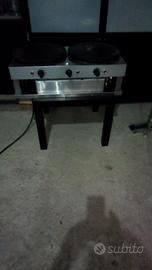 Cucinino con 2 piastre per crepe, indicato per utilizzo professionale. Acciaio inox. Include cassetti porta-condimenti come in foto. Ad alimentazione elettrica, consegna a mano. Misure: 70x36 cm