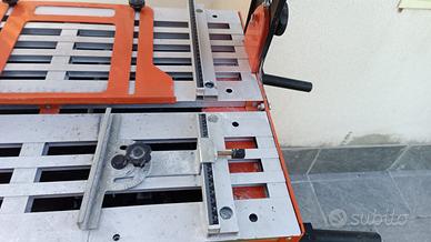 Vendo per inutilizzo,usata poco, macchina per il taglio delle piastrelle con banco.- 900 W - Lunghezza di taglio: 650 mm - Raffreddamento ad acqua.Tagli precisi sul posto con la taglierina mobile per piastrelle,regolazione precisa dell'angolo,Il telaio di base del tagliapiastrelle non solo garantisce un appoggio sicuro, ma è anche molto facile da spostare grazie alle rotelle. Le gambe e le ruote possono essere ripiegate in poche semplici mosse per un trasporto agevole da un cantiere all'altro.Taglio massima di 650 mm a una profondità di 15 mm (con un angolo di taglio di 90°) e di 10 mm (con un angolo di taglio di 45°).