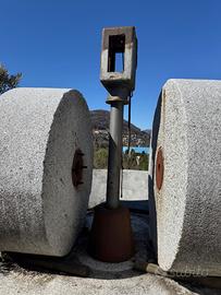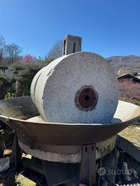 Macina in granito d’epoca perfetta come arredo giardino, un opera d’arte storica