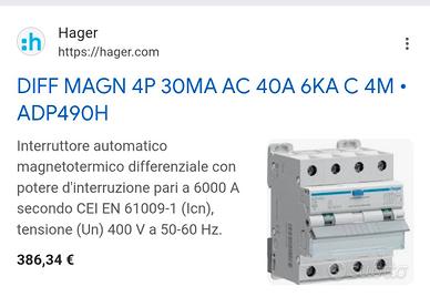 magnetotermico differenziale hager