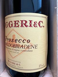 Bellissima bottiglia magnum di prosecco da 3 litri della cantina Ruggeri con scatola di legno personalizzata. Sigillata.