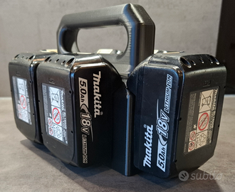 Progettato su misura per l'ecosistema Makita LXT, il supporto è realizzato mediante stampa 3D ad alta densità con un design strutturale rinforzato per sopportare il peso combinato di quattro batterie pesanti da 5.0Ah o 6.0Ah. L'impugnatura ergonomica centrale permette un bilanciamento perfetto durante il trasporto. Ogni batteria si blocca in posizione con un meccanismo a scatto "click-in" che garantisce una tenuta salda ed evita sganci accidentali anche in cantiere.
