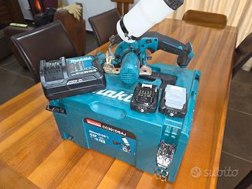 La Sega Diamantata Makita CC301DSMJ 12V 4Ah, disco diamantato Ø 85mm da design compatto e leggero, impugnatura ergonomica soft- grip, è ideale per taglio ad umido di ceramica e vetro grazie all’elevata manovrabilità. Sega diamantata Makita CC301DSMJ compatta per taglio ad umido su EmmetiStore Su EmmetiStore trovi soluzioni professionali e affidabili. La Makita CC301DSMJ è una sega diamantata a batteria progettata per il taglio ad umido di ceramica e vetro, ideale per lavori di precisione grazie al design compatto e leggero. A cosa serve Makita CC301DSMJ La Makita CC301DSMJ serve per eseguire tagli precisi su ceramica e vetro, risultando perfetta per rifiniture, posa di piastrelle e lavorazioni delicate che richiedono elevata manovrabilità e controllo. Vantaggi principali Design compatto e leggero per maggiore efficienza. Taglio ad umido per ridurre tempi e fatica. Base regolabile inclinabile per affidabilità costante. Impugnatura ergonomica soft-grip per sicurezza e controllo. Specifiche tecniche Tensione: 12 V. Diametro lama: 85 mm. Diametro foro: 15 mm. Velocità a vuoto: 1600 giri/min. Profondità di taglio a 90°: 25,5 mm. Profondità di taglio a 45°: 16,5 mm. Capacità serbatoio: 0,5 L. Angolo di inclinazione: 45°. Livello potenza sonora: 95 dB(A). Livello pressione sonora: 84 dB(A). Vibrazioni: ≤ 2,5 m/s². Peso con batteria: 1,8 - 1,9 kg. Dimensioni: 313 x 170 x 125 mm. Ideale per Taglio ceramica in posa e rifinitura. Taglio vetro per installazione e manutenzione. Lavorazioni di precisione in ambito professionale. Utilizzo prolungato per uso continuo. Accessori in dotazione 2 Batterie Makita BL1240B: alimentazione e autonomia. Caricabatterie Makita DC10SA. Valigetta Makpac Tipo 3. Disco diamantato Makita 85 mm B-21098: per taglio ad umido oggetto usato per piccoli lavoretti uso hobby condizioni eccellenti