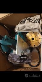 sega diamantata Makita 4100KB con disco diamantato a secco Ø 125 mm con potenza di 1.400 W è ideale per taglio a secco e senza polvere di marmo, pietra, granito e piastrelle. Ottima maneggevolezza grazie all’ampia e confortevole impugnatura con 12.200 g/min con aspirazione delle polveri con sacco (in dotazione) oppure collegabile ad aspiratore tramite attacco che ruota a 360°. La sega diamantata 4100KB è studiata per una rapida sostituzione della lama con interruttore protetto dalle polveri e spazzole accessibili dall’esterno. Makita 4100KB include Sacchetto per raccolta polveri, chiavi di servizio e disco diamantato segmentato.The Makita 4100KB diamond saw with a 125 mm diameter dry diamond blade and 1,400 W of power is ideal for dry, dust-free cutting of marble, stone, granite, and tiles. Excellent maneuverability thanks to the wide, comfortable handle, 12,200 rpm, and dust extraction with a bag (included) or connection to a vacuum cleaner via a 360° rotatable connection. The 4100KB diamond saw is designed for quick blade changes with a dust-protected switch and externally accessible brushes. The Makita 4100KB includes a dust collection bag, service wrenches, and a segmented diamond blade.