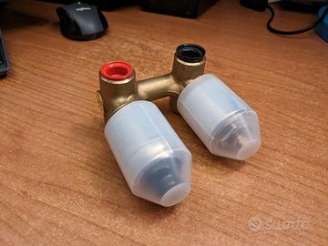 Prima di ristrutturare casa ho acquistato tutta la rubinetteria necessaria, ma al momemento del montaggio l'idraulico non è riuscito a trovare alcuni pezzi negli scatolini e mi ha montato della sua rubinetteria.