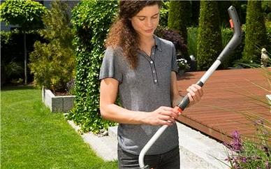 -Grazie al manico telescopico, che si adatta alle forbici per erba a batteria GARDENA ClassicCut Li e ComfortCut Li, è possibile lavorare comodamente ed ergonomicamente mantenendo una posizione eretta.