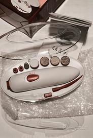 Il manicure pedicure set è pronto all'uso, basta inserire la testina o il disco desiderato direttamente nella testina del corpo principale. Caratteristiche tecniche: - 2 velocità - Posizione 0: off - Posizione I: delicato - Posizione II: energico - Funziona con 2 batterie di tipo AA (incluse nella confezione) Custodia in plastica con 8 accessori: 1. Solleva cuticole 2. Testina piccola (per rimuovere pelle morta, inspessimenti della pelle e calli) 3. Mini cilindro (per levigare inspessimenti dell'unghia e pellicine rovinate) 4. Testina conica (per levigare delicatamente pelli ruvide o calli) 5. Disco ruvido modellante (con granelli grandi per levigare e modellare) 6. Disco ruvido modellante (con piccoli granelli per levigare e modellare anche la pelle intorno all'unghia) 7. Disco levigante di precisione (con granelli tondi per levigare anche la pelle più delicata) 8. Disco lucidante (per lucidare le unghie dopo il trattamento, rendendole lisce e splendenti)