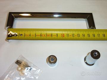 Vendo maniglia nuova per box doccia in acciaio cromato di ottima qualità. Misure: lunghezza cm.17,5 - da foro a foro cm.16 - diametro cm.1,5