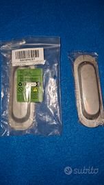 vendo maniglie per porta scorrevole in acciaio, 120 mm (12 cm) di altezza, 41 mm (4,1 cm) di larghezza e solo 2mm di profondità (0,2 cm) la parte in rilievo e 12 mm quella a incasso.