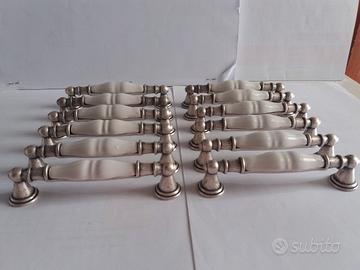 ( CODICE,N.578 ) MANIGLIE COLORE ARGENTO CON APPLICAZIONE CERAMICA BIANCA. - PASSO FORI PER IL FISSAGGIO - CENT. 9,5 - N.12 - PEZZI -