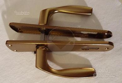 Coppia maniglie alluminio anodizzato bronzo complete di placche foro YALE