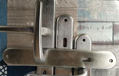 MANIGLIE ARGENTO-SATINATO PER SERRAMENTI INTERNI q.tà 4 COME DA FOTO