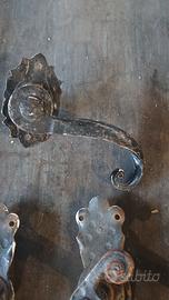 maniglie per serramenti in ferro battuto vintage 9 per finestre e 2 per i portoni compreso un pomello battiporta in ferro Ottimi per un casale o rustico, ad interessati mando foto e numero pezzi precisi,