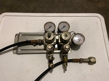 - riduttore pressione con manometri a 2 vie con staffa e tubo alta pressione (freccia verde): 65,00€ - riduttore pressione con manometri a 2 vie con attacco bombola CO2 (freccia rossa): 65,00€