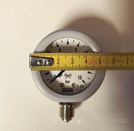 Manometro pressione WIKA scala 0/10 bar diametro 50mm attacco radiale 1/4" Gas con protezione antiurto in gomma prodotto mai usato - nuovo.
