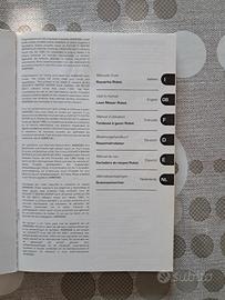 Manuale d'uso per robot tagliaerba Ambrogio. - Copertina con immagini dei modelli Professional, Deluxe ed Evolution. - Testo in diverse lingue