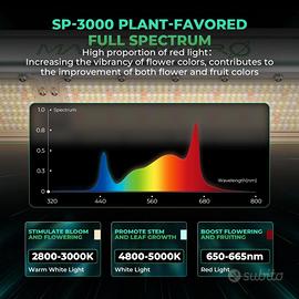MARS HYDRO SP3000 Luci di crescita per serra, spettro completo, copertura 2x4, efficienza energetica, coltivazione verticale commerciale per piantine, fiori e piante, 300W.