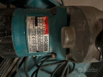 Vendo martello demolitore Makita HR3850B professionale, 940W, attacco Ø38 mm. Completo di valigetta originale, impugnatura laterale e scalpelli come da foto. Utensile usato, con normali segni di utilizzo da cantiere. Ideale per demolizioni, muratura e lavori edili. Ritiro a mano / prova possibile.