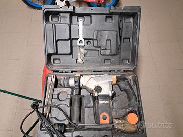 Il prodotto nell'immagine è unmartello perforatore Worx WX333. Potenza: 1250 W. Funzioni: Foratura, foratura a percussione e demolizione (3 funzioni). Energia di percussione: 5,0 Joule. Sistema mandrino: SDS Plus.