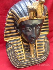 Maschera Divina di Tutankhamon Busto Scultura. Anni ‘80.Maschera di Re Tut. Dimensioni: base cm 19x16. Altezza cm 34. Profondità cm 14