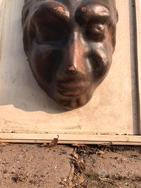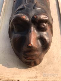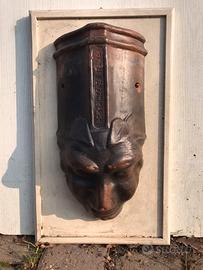 Tegola in terracotta con maschera, come da foto, per decorazione o esposizione in ville, giardini o appartamenti. Buono stato.