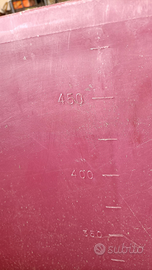 - mastello rosso dalla capacita' di 500 LT. con indicatore di livello e possibilità di inserire rubinetto esterno. Dimensioni: larghezza 100 cm, altezza 90 cm.
