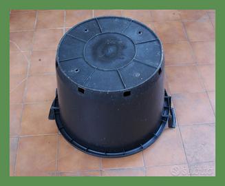 Mastello circolare con manici e fori di scolo sul fondo. Diametro 60 cm ed altezza 40 cm (manici esclusi), capienza 75 l.