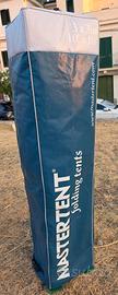 Vendo gazebo pieghevole marca Mastertent 3m x 3m colore verde con sacco contenitore. Struttura in ottimo stato, copertura con qualche segno di usura (come da foto).