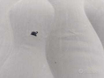 Materassino marca jilong modello jl29p381g con pompa elettrica misure 98 x 184 cm. Ha una macchia visibile in foto e una perdita da riparare con le toppe fornite in dotazione.