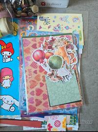 set materiale creativo ,scrapbooking, journaling, beauty c'è un po di tutto ,adesivi ,stikers,fogli colorati e decorati, penne ,quadernini,fustellati ecc..
