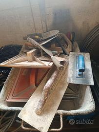 Vendo materiale edile di vario tipo, pezzi di grondaia e camino, curve, pannelli isolanti, spatole cazzuole frattazzi, siliconi e pistole, spatole abrasive. Prezzo indicativo e da valutare in base agli oggetti che si intendono acquistare.