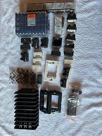 Materiale elettrico Biticino Living nuovo. 3 pulsanti da completare con copritasto nero L4005/0. 10 supporti blu a 3 posti LN4703 con relative coppie di viti. 13 copriforo tappo falso L4950 neri. 1 presa schuko nera bipasso L4140. 2 prese telefoniche nere RJ11K10 art L4258/1N. 1 presa tv nera L4202DC. 1 presa nera bipasso L4180. 2 deviatori neri L4003N. 1 deviatore nero L4003/0. 4 copritasti neri. 1 interruttore nero L4001N. 1 placca bianca; 1 supporto bianco N4703. 3 tasti bianchi falsopolo N4950. 1 tappo B1225. 2 interruttori bianchi N4001. . 2 interruttori N4001. 12 Placche Nere L4703. 1 set C85/55. In blocco Euro 55,00