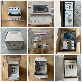 Causa svuoto magazzino, vendo il seguente materiale elettrico. Alcuni prodotti sono nuovi con la relativa scatola, altri senza. Di seguito la lista: - 5 prese Vimar Idea (16210.R) - 1 sensore di movimento Finder (18.01.8.230.0000) - 1 coppia di fotocellule Came (001DELTA-E) - 1 interruttore orario programmabile Schneider (CCT15720) - 1250 targhette quadro 17x52mm - 1 relè di misura e controllo Schneider (RM35JA32MW) - 8 blocchi differenziali Merlin Gerin C32 2P 30mA (20676) - 1 trasformatore per campanello Abb (TM15/12) - 1 scatola salvamotore Schneider (GV2 MC02) - 11 portafusibili singoli 10x38 Legrand (058 08) - 5 scatole Gewiss 3 fori (GW 27 103) - 2 prese interbloccate Gewiss (GW 66 126) - 2 prese interbloccate Gewiss (GW 66 308) - 1 presa interbloccata Gewiss (GW 66 304) - 1 interruttore magnetotermico Schneider iC40a 1P+N C 6A (A9P52606) - 1 blocco differenziale Vigi iC60 4P 63A 300mA Schneider (A9V54463) - 2 blocchi differenziali Vigi iC60 2P 25A 30mA Schneider (A9Q41225) - 1 blocco differenziale 2P 40A 30mA Eaton (FBSmV-40/2/003) - 1 interruttore magnetotermico differenziale 2P 25A 30mA - 20 interruttori automatici 1P C 16A Unelec - 6 interruttori automatici 1P C 10A Unelec - 6 interruttori automatici 1P C 6A Unelec - 7 interruttori automatici 2P C 2A Unelec - 4 interruttori automatici 3P C 10A Chint - 5 interruttori automatici 2P C 25A Bticino (F881NA/25) - 1 interruttore magnetotermico differenziale 2P C 16A 30mA Gewiss (GW 20 436 + GW 20 442) - 1 interruttore magnetotermico 2P C 2A Siemens (5SY6202-7) - 1 interruttore magnetotermico differenziale 4P C 25A 30mA Bticino (G8843/25AC) - 30 centralini Gewiss (GW 40001) compresi di interruttore magnetotermico differenziale 2P C 25A 30mA Merlin Gerin - 5 termoresistenze PT100-E 3 fili (VN879300) Per eventuali prezzi, non esitate a contattarmi. Possibilità di spedizione tracciata in tutta Italia con spese a carico dell’acquirente