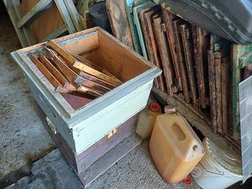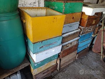 Da vendere diverse materiale per apicoltura (arnie, bidone in plastica verde...) Le arnie non sono complete. Sono usate e ogni pezzo è venduto a partire da 10 euros (anche di meno).