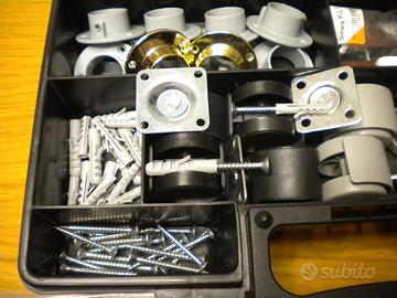 Vendo solo tutto insieme ma, qualora ci fosse un prodotto che proprio non volete, contattatemi che ci accordiamo. Per es: se non vi interessano i reggi-tubo è possibile sostituirli con una coppia di ganci bronzati o con dei reggimensola, etc, in sostanza la confezione potete comporla voi con il poco materiale fai da te che mi è rimasto ma tutto nuovo.