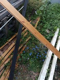 Vendo materiale per pergola a muro di circa 8 metri in ferro zincato. Già smontata con legno di copertura (perline varie misure circa 30 metri quadri) e telo 8n PVC.