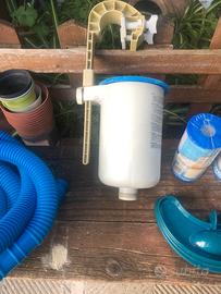 Vendo porta pasticche per cloro completo di 3 tubi da 32. Una pompa per filtro, spazzola per pulire la piscina e 6 filtri nuovi Ritiro a mano Battipaglia zona mare