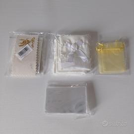 Vendo materiale vario per bomboniere: 24 cuori piantabili in carta che germoglia 4,5x4,5 cm rotoli nastri non interi di vari colori (come da foto) 46 biglietti per comunioni carta riso beige rotolo tulle bianco (usato pochissimo) cm 20 39 pezzi tulle quadrato bianco cm 16 61 bustine trasparenti porta confetti 7,5x11,5 NON PIÙ DISPONIBILI 4 sacchettini comunione 4 scatoline comunione In regalo 7 biglietti battesimo e 2 sacchettini gialli Se interessati parzialmente, contattatemi per i prezzi.