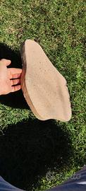 Vendo n.6 mattonelle sagomate a forma di piede gigante fatte di graniglia e cemento color arancio. Letizia