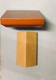 Materiale di marca Thun da assemblare stufa in ceramica refrattaria color ocra e aragista con rilievi fiore quafrifoglio