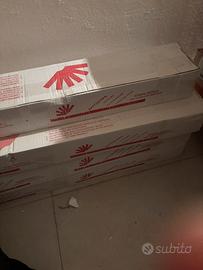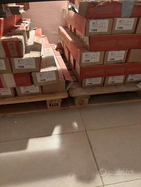 Il lotto in questione comprende circa 100mq di mattonelle piu 80 metri lineari di battiscopa lavorati a becco di civetta per una facile pulizia della polvere, color faggio, il tutto ancora completamente inscatolato.