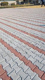 Mattoni Pavimento Autobloccanti a doppia T in calcestruzzo Per piazzali, vialetti o bordature. Sono 110 pezzi grigi e rossi. 20x16.5 cm (circa 3,5mq o 22 m lineari) Disponibili cordoli cemento o travertino (vedere altri annunci) Ritiro di persona