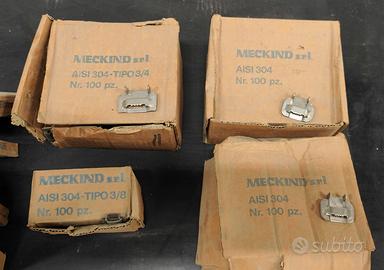 vendo per cessata attività attrezzo tirafascette meckind MK001 ideale per serraggio nastri metallici e graffe band-flex in acciao inossidabile da 6,3 mm (1/4") a 20 mm (3/4"). ha la funzione di tirare il nastro metallico dopo averlo inserito nella graffa e tagliare la parte in eccedenza. n.4 rotoli da 30 mt di nastro ban-flex aisi204 varie misure; n.4 scatole di graffe band-flex aisi304 varie misure.