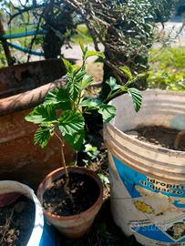 Melo selvatico, fiori bianchi, frutti piccolissimi rossi con 8 ossicini all'interno. Le piantine sono appena state estratte e invasate e sono pronte per essere trapiantate