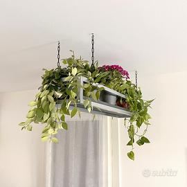 MENSOLA PER FIORI Ornamentale da appendere a soffitto mediante ganci e catenelle incluse. Per accogliere i tuoi fiori e le tue piante, ma anche calici e bottiglie di vino, libri e ogni tipo di oggetti. Particolarmente adatta per il soggiorno, la cucina, il bar, il ristorante e la caffetteria.