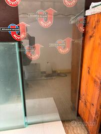 Vendo le seguenti mensole in vetro trasparente di misure e spessore diverso: n. 10 alte cm.62 larghe cm. 40 spessore mm. 6. Prezzo cadauna 4 euro. Figura 1. N. 3 alte cm 88. larghe cm. 40 spessore mm. 5. Prezzo cadauna 5 euro. Figura 2. N.9 alte cm. 85 larghe cm. 30 spessore mm.8. Prezzo cadauna 5 euro. Alcune di esse sono state molate agli angoli per inserirle nella scaffalatura. Figure 3 e 4. Tutte inserite in scaffalatura di negozio ora chiuso. Ritiro sul posto a carico del cliente.