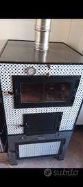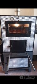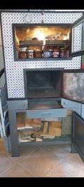 ATTENZIONE: ritiro diretto dal venditore Peso circa 260/300 kg. Altezza del forno: m 1,46 larghezza: cm 77 profondità: cm 86. Dimensioni interne piano di cottura, altezza cm 30 con ripiano a metà, profondità interna: cm 71, Larghezza del piano cottura: cm 51,5 mentre il ripiano griglia per le teglie è di cm 57. Si tratta di un pezzo unico, di manifattura artigianale, tutto in acciaio coibentato, spessore piastra camera di combustione 3/5 mm. Rivestimento esterno in ceramica, piano cottura in pietra refrattaria con tetto in acciaio inox. Si può cuocere di tutto, anche contemporaneamente, pizza, pane, biscotti, torte, mele, verdure, ecc. Provvisto di manici estraibili e due ruote posteriori per lo spostamento a mano e si può farne uso sia all'interno che all'esterno.