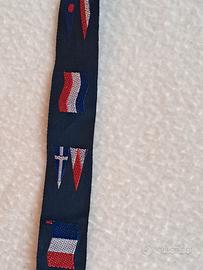 Merceria: passamaneria blu Decorata con bandierine ricamate Colori: blu, bianco, rosso In nylon sostenuto Lunghezza m 16 Larghezza cm 2 #merceria #passamaneriablu #passamaneriaconbandierine